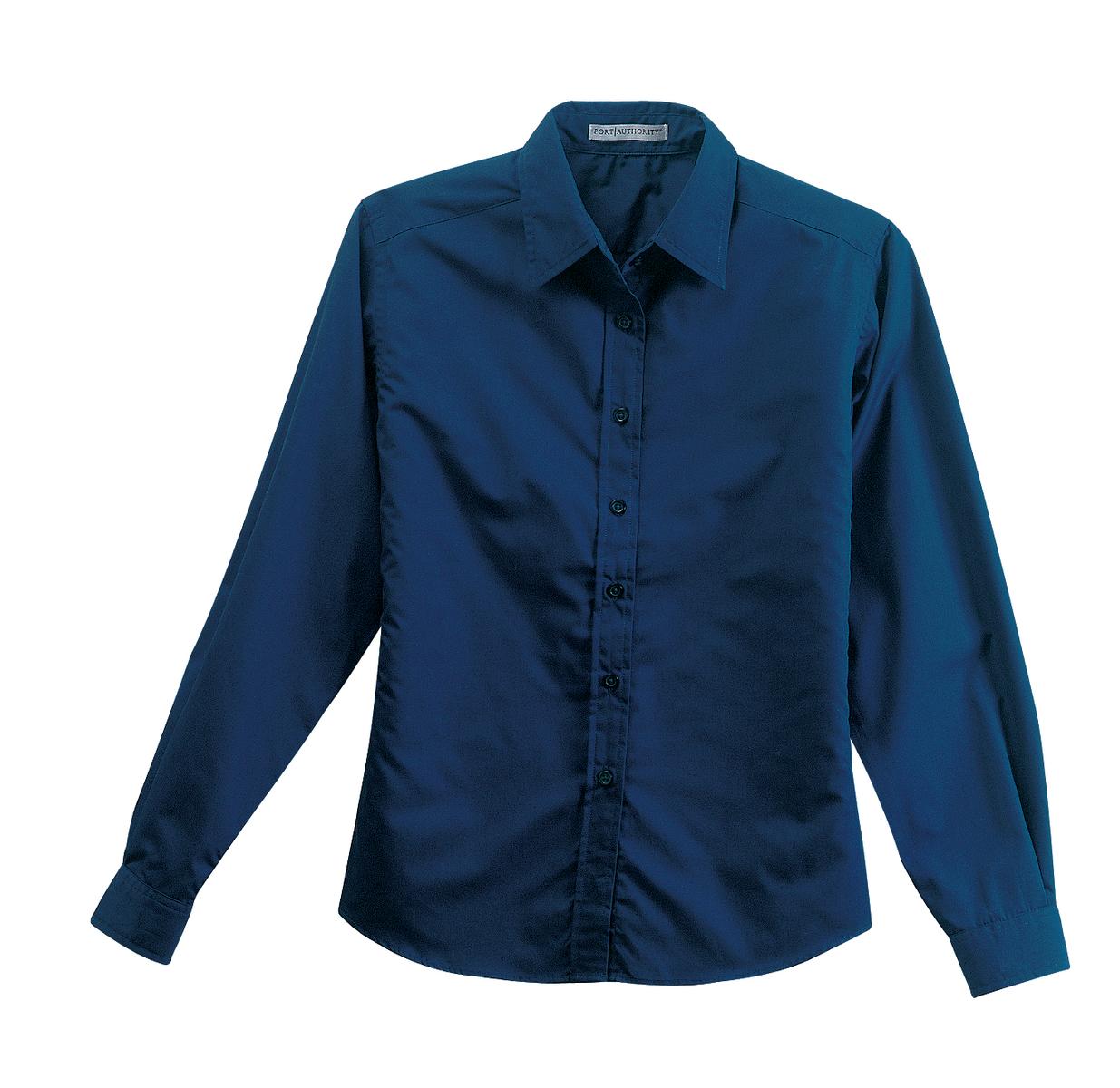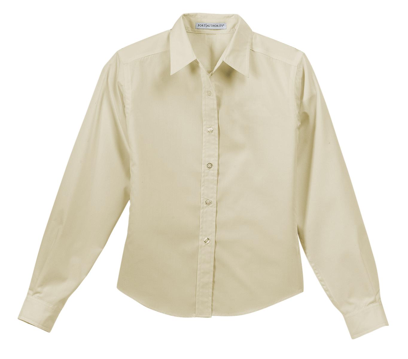 CLOSEOUT Port Authority Ladies Long Sleeve Easy Care, Soil Resistant Shirt. L607A carefree work shirt you'll actually enjoy wearing. The wrinkle-resistant fabric keeps you looking sharp, while the soil-release treatment protects you from stains. All this at a tremendous value!,3.7-ounce, 60/40 cotton/poly with soil-release finish,Traditional, relaxed look,Open collar,Dyed-to-match buttons,Button-through sleeve plackets,Adjustable cuffs