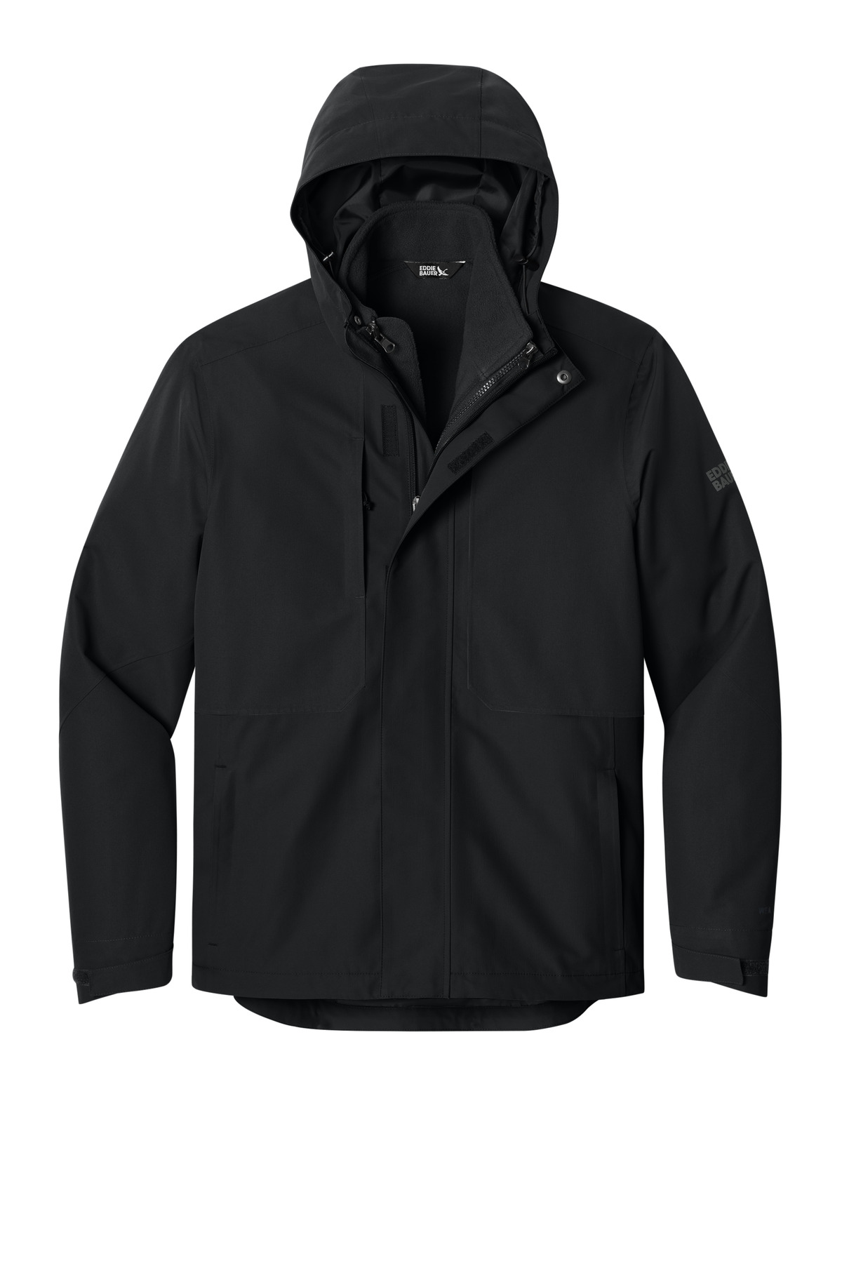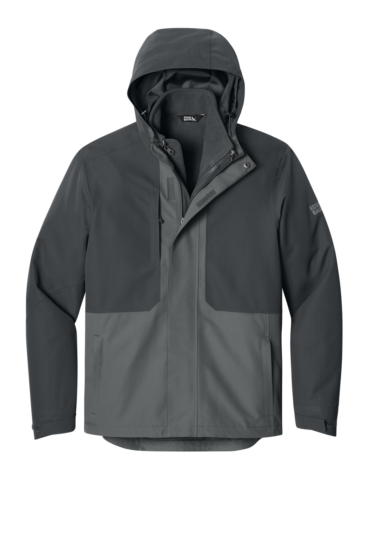 Eddie Bauer WeatherEdge Ridge 3-in-1 Jacket EB658This 5K/5K jacket system fully adapts to whatever Mother Nature throws at it. The shell features exclusive WeatherEdge durable water-repellent technology, while the removable inner fleece jacket adds warmth.,100% polyester shell with durable water-repellent (DWR) finish,9.2-ounce, 100% polyester fleece inner jacket,Fully seam-sealed shell,Adjustable three-panel hood,Reverse coil center front zipper,Covered storm guard,Adjustable tab cuffs with hook and loop closures,Hidden zippered chest pocket,Adjustable locking drawcord hem,Inner jacket: molded center front zipper, open hand pockets,Three-point attachment system to combine jackets: inner jacket zips into shell with attachment points at neck and cuffs,Decoration access pocket,Tonal heat transfer Eddie Bauer and WeatherEdge logos on left sleeve